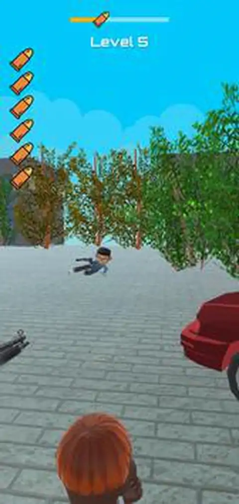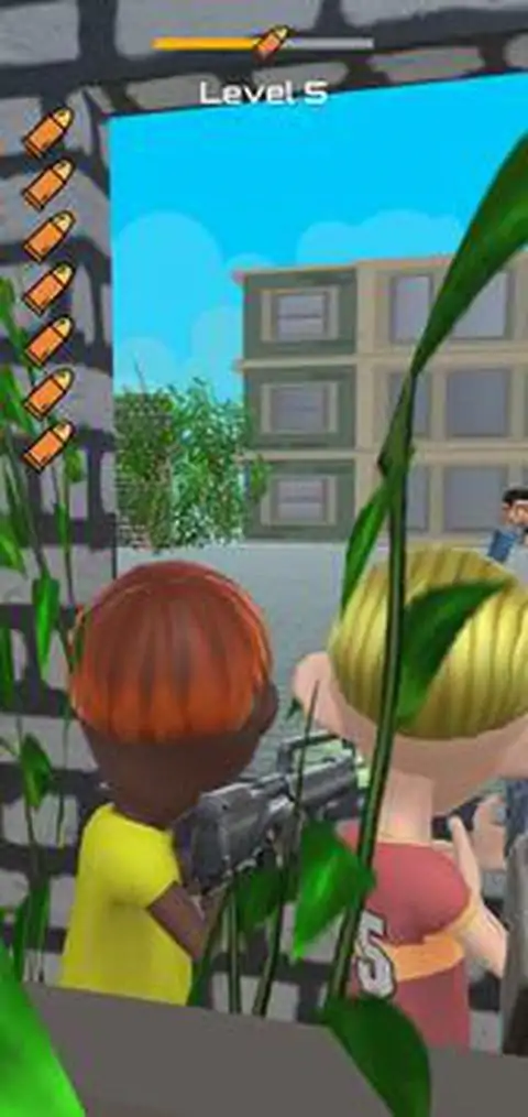 具有慢动作效果的 3D 射击游戏 青少年可以奔跑、滑行、跳跃和向左/右侧看,通过许多不同的关卡射击青少年