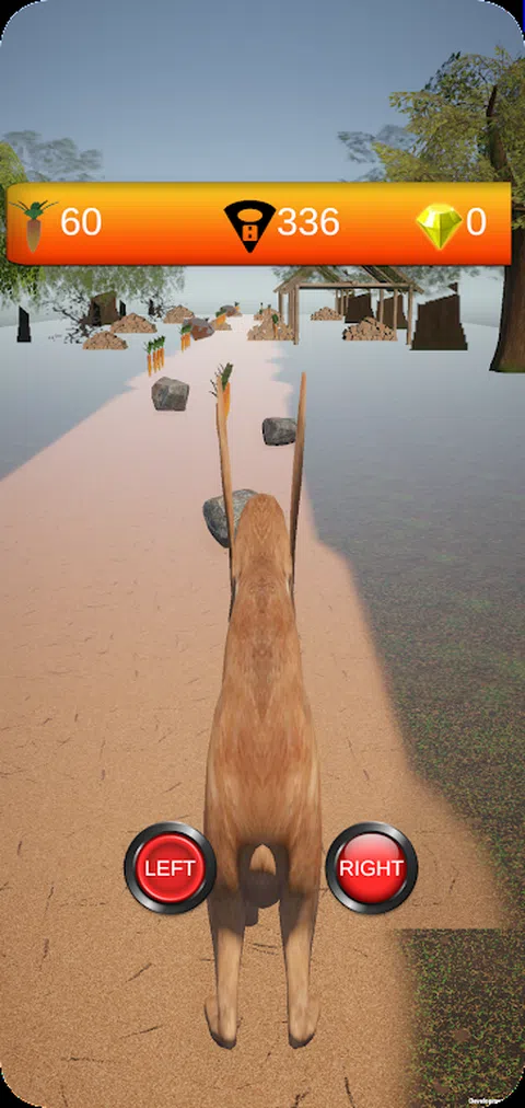 一个无尽的游戏,兔子寻找胡萝卜和宝石,收集尽可能多的胡萝卜,不要撞到沿途的障碍物,小心树木、木材、岩石和许多其他阻碍你喂兔子的障碍物