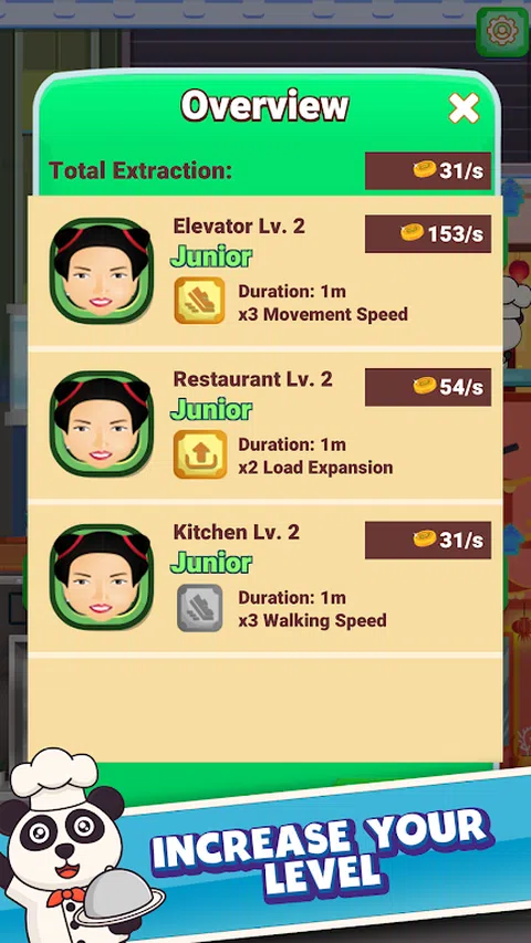 欢迎来到空闲餐厅,终极烹饪冒险! 从头开始建造您的梦想餐厅,并成为一名大厨。烹饪美味的饭菜,为饥饿的顾客服务,并赚钱升级厨房并扩大帝国。 通过简单直观的游戏玩法,您可以管理餐厅并使其成为镇上最好的餐厅。雇用熟练的厨师,培训员工,并制作令人垂涎的菜肴,让您的顾客成为回头客。 特点: - 建立和管理自己的餐厅帝国 -烹饪并供应各种美味佳肴 - 雇用和培训熟练的厨师和员工 - 解锁新的食谱、原料和设备 - 参加烹饪比赛并赢取奖品 - 扩展您的餐厅并根据自己的喜好进行装饰 - 简单直观的游戏 - 令人惊叹的图形和引人入胜的声音效果 随着您的进步,您将解锁新的食谱、食材和设备,以帮助您烹饪更好的菜肴。有多种美食可供选择,包括、意大利、中国等,您永远不会对烹饪感到厌倦。 《空闲餐厅》是任何喜欢美食和烹饪的人的完美游戏。无论您是经验丰富的厨师还是刚刚起步,您都会喜欢建立和管理自己的餐厅的挑战。凭借其令人上瘾的游戏玩法和精美的图形,空闲餐厅一定会让您连续几个小时都乐在其中。 但这还不是全部 - 您还可以参加激动人心的烹饪比赛并赢取奖品,这将帮助您进一步发展餐厅。凭借令人惊叹的图形和令人上瘾的游戏玩法,空闲餐厅是世界各地美食爱好者的终极烹饪冒险。 您准备好成为烹饪大亨了吗?立即下载空闲餐厅并开始烹饪