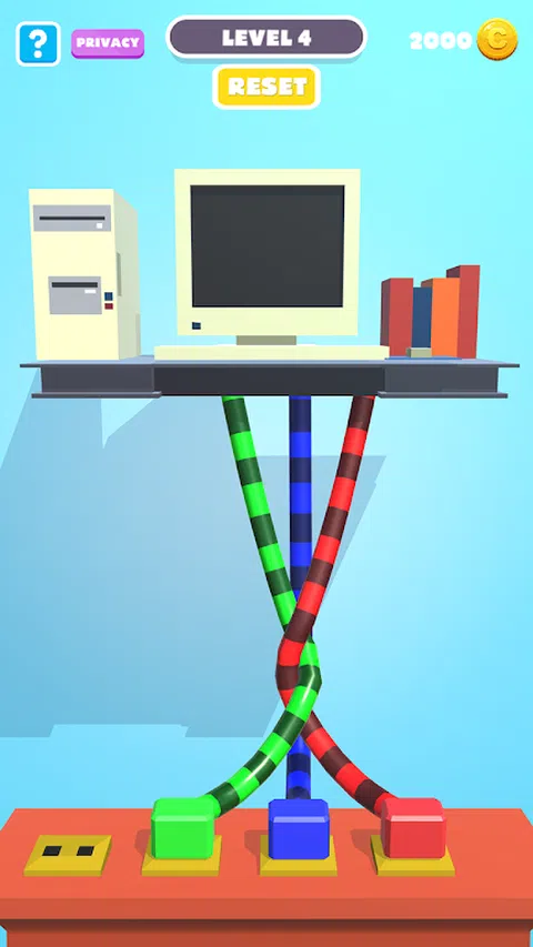 按正确的顺序对绳索进行分类,并按时解开! 解开它!缠结的电缆益智游戏! 缠结和打结电缆!这是一个具有挑战性但又超级有趣的大脑益智游戏,易于操作,但很难掌握。 这是一个具有挑战性但又超级有趣的大脑拼图,具有易于玩的控件。只需按正确的顺序对绳索进行分类,并按时解开绳索!请记住,您完成关卡的动作也有限,因此请专注于匹配颜色、分类绳索并解开绳索。 移动以完成关卡,因此请专注于其物理特性,尽量不要卡住! - 好吧,你可以,但别担心,我们有很多助推器可以一路帮助你 :) 你喜欢智力游戏和谜语吗?这是有史以来最好的 3D 脑筋急转弯游戏!掌握缠结和结! 两条绳索是小菜一碟!逗弄您的大脑,放松并享受游戏 :) 三根绳索使您成为游戏大师,3D 缠结大师!没有任何绳结可以阻止您! 四根绳索“四倍”您的乐趣!哇,你真是个天才! 你准备好迎接大师挑战了吗?快来享受这款益智游戏吧!数以百计的独特关卡、定制功能和特殊的周末锦标赛