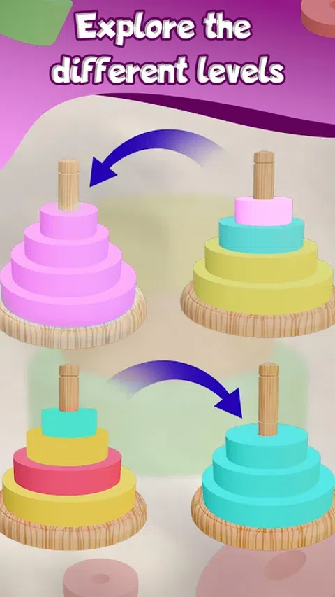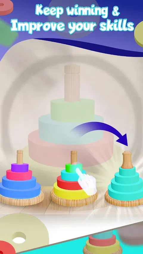 说明:玩汉诺塔排序游戏,挑战您的大脑并击败自己! 1. 不同类型的戒指。 2. 惊人的游戏背景。 3. 具有挑战性的关卡