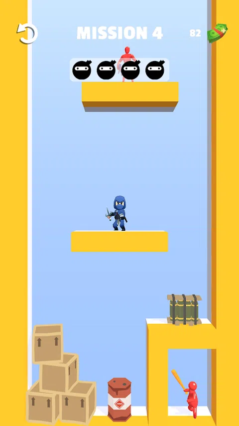 喜欢策略游戏、拼图和格斗?在这个游戏中,您将有机会成为笨拙的敌人的忍者并将其击落。通过射击敌人来体验解谜游戏。 它不仅是射击游戏,还是战略益智游戏。您不仅需要机智地行动,还需要快速解决难题并实现目标。测试您的智力、速度和准确性,成为一名专业的忍者。 用物理方法消灭不容易触及的敌人!技巧、弹跳、爆炸和重力。 由于短暂而沸腾的能量水平,这款射击游戏非常适合在工作或学校休息时消磨时间。如果你找到更多的空闲时间,你会发现每一个回合都有大量的物品和任务等着你。 闯入游戏并射击