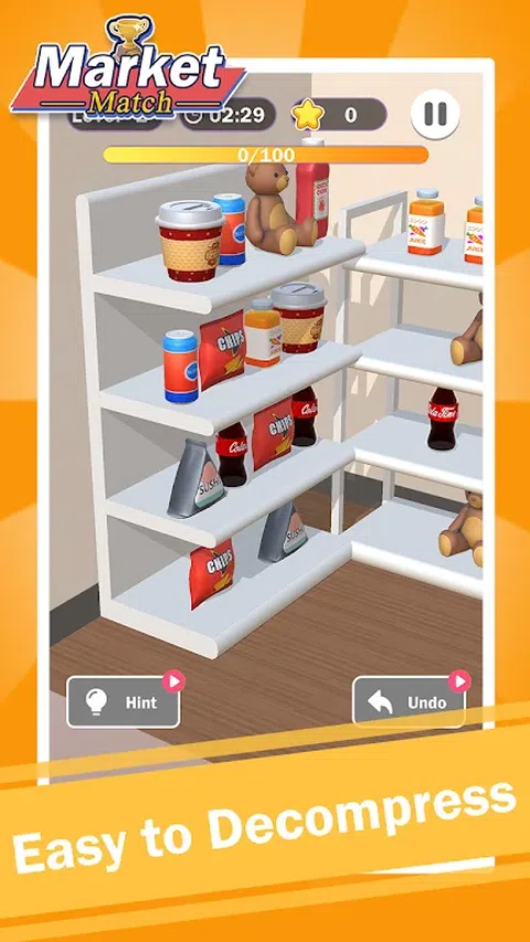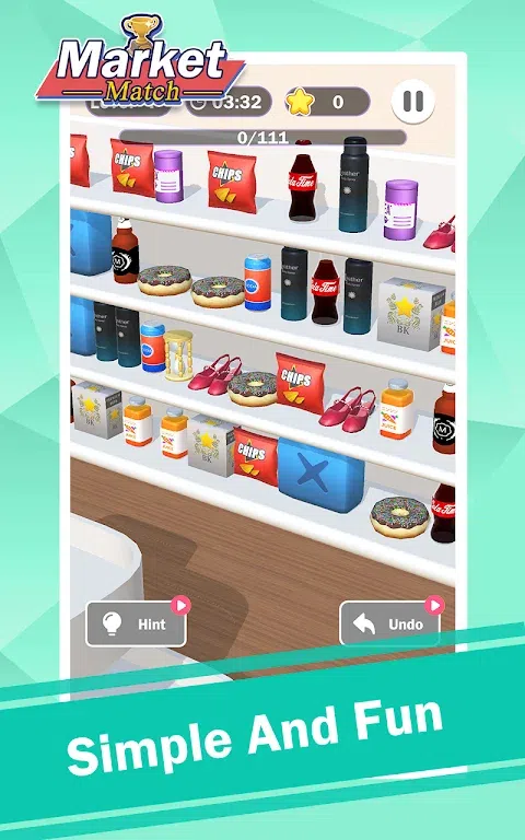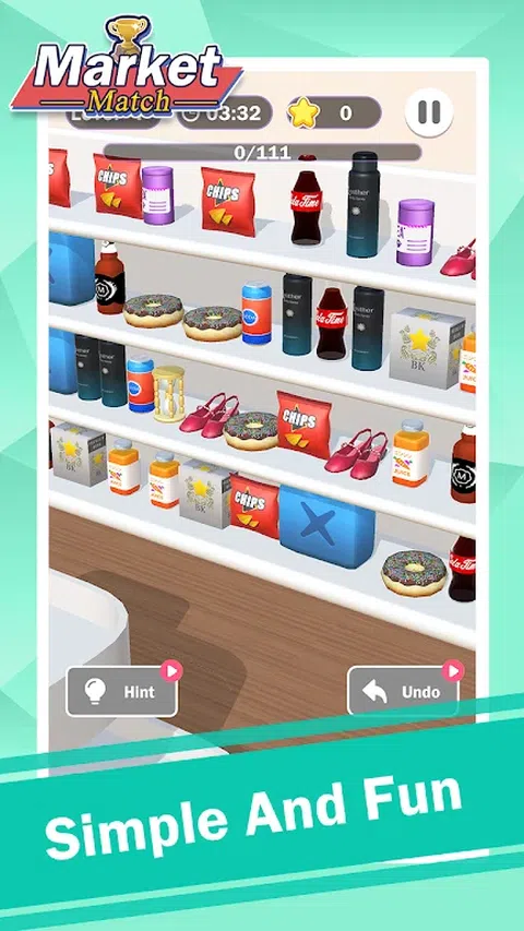 来到市场,找到并匹配物品,收集架子上的所有物品!市场匹配是一款原创的三消益智游戏。在架子上找到 3 个相同的物品,并清除所有物品。提示,背面可能有一些物品,单击放大镜按钮并转动视图,您会找到它们。 如果你想成为大师,你不仅必须有敏捷的思维,还必须掌握一些出色的记忆技巧。 游戏特色: ✦ Mraket Match 提供各种有趣的物品,例如:饮料?,饼干?,时钟?,蛋糕?,零食?,动物玩具?,等等。 ✦ 玩法简单,规则简单,令人上瘾,适合所有年龄段。 ? ✦ 有用的提示和强大的助推器? ✦ 无限挑战有趣的关卡,收集更多星星以获得超棒的奖励。挑战自己! ✦ 随时随地免费玩。 怎么玩 ✦ 只需点击即可将 3D 物品放入保持条中。将收集三个相同的图块。尽快收集所有图块。 ✦ 点击并拖动屏幕,可以移动视图。 ✦ 单击架子上的按钮,您的视图将被修改,您可以通过点击箭头按钮向左或向右转以更改视图。 ✦ 当所有图块收集完毕后,您就赢了! ✦ 小心!如果盒子上有 7 个奇数物体,你就失败了! ✦每个级别都有限制时间。尝试在时间用完之前完成游戏。 ✦ 每个对象面板都不同,并且每个对象面板都不相同,为您玩的每个级别赋予游戏不同的风格。 市场匹配将提高您的问题解决能力,锻炼您的逻辑思维和记忆力。在锻炼大脑的同时玩得开心。这款益智游戏将成为您消磨时间的最佳选择!在这个匹配 3 益智游戏中享受您的时间并训练您的大脑! 快来下载市场匹配吧