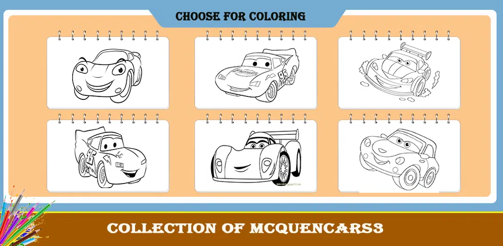 闪电汽车着色书是一款适合所有人的着色游戏。专为那些喜欢为绘画着色和为多彩麦昆汽车着色的人而设计