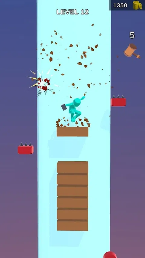 锤子人 3D 是一款免费游戏,有很多有趣的关卡,玩家跳跃并粉碎木块,到达底部,使用锤子的力量杀死所有敌人。 所以你需要全神贯注,否则你会遇到障碍,你必须重新开始。 怎么玩:- - 只需按住手指,让玩家下去。 - 点击并摧毁方块。 - 避开所有障碍。 - 以自己的方式收集所有锤子。 - 尝试杀死所有敌人以获得奖金和奖励