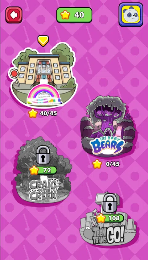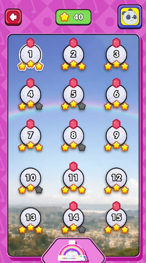 卡通疯狂高尔夫带您与四部流行的卡通电影中的典型角色见面。将球击入洞中是您的职责。尽可能少地点击将帮助您收集所有 3 星。 与卡通人物一起打高尔夫球 如果您是高尔夫爱好者,那么这款游戏绝对不容错过。没有什么比与卡通人物一起玩更好的了。在这里,您将遇到来自许多不同电影的无数著名人物。打高尔夫球以探索许多不同的地方。 高尔夫球入洞 沿途控制球,使球尽可能靠近球洞。在途中,要小心湖泊、沙坑、电力等障碍物。这些将干扰将球击入球洞。 收集星星 将高尔夫球击入球洞并保持三颗星,完美地完成您的高尔夫挥杆。点击次数越少,您将保持三颗星,但点击次数越多,星星数量将减少。收集星星非常重要,它是打开通往新位置的门户的先决条件。 体验角色 除了游戏地点,您还将遇到四部著名电影中的一些典型角色。通过单击屏幕的右上角,您可以随心所欲地选择。有些角色是免费的,有些角色需要通过交换星星来解锁。 解锁新地点 四个不同的位置对应于四部不同的电影:The World of Gamball、WeBare Bears、Craig of the Crek Ten Titan's Goo 要解锁这些位置,您需要收集当前位置的星星。尝试完成所有三颗星将帮助您更快地解锁新位置