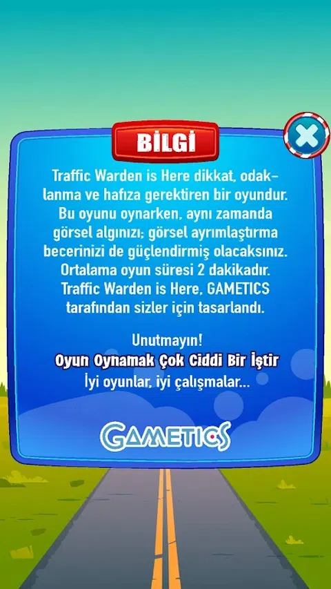 交通督导员在这里是一款需要注意力、专注力和记忆力的游戏。 在玩这个游戏的同时,你还可以提高你的视觉感知;你还将加强你的视觉辨别能力。平均游戏时间为2分钟。交通督导员在这里,由GAMETICS为你设计。乌努特迈恩!玩游戏是一件很严肃的事情。好游戏,好作品。