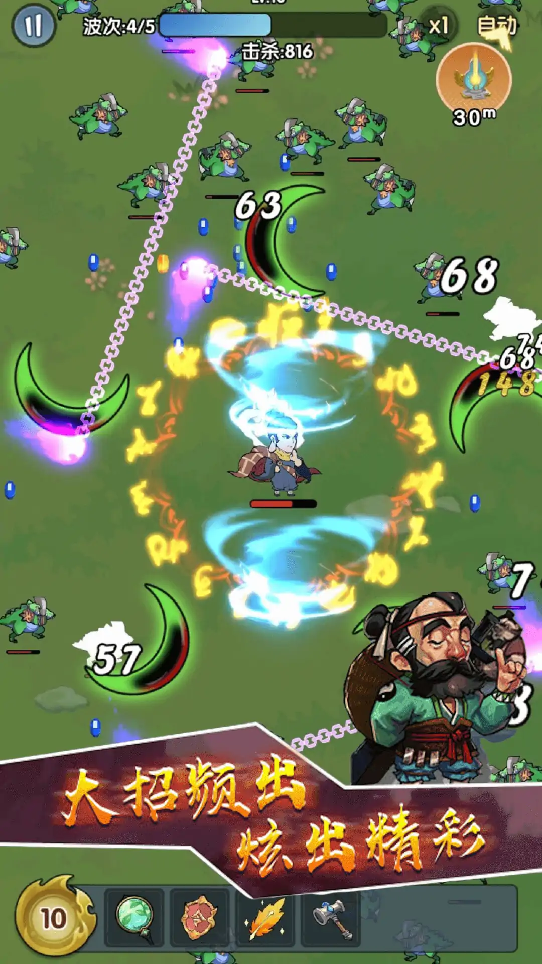 游戏还原转刀割草玩法,开局只有一把刀环绕在玩家的身边,玩家可以通过身边的刀会破坏场景收集道具和消灭其他的转刀小兵。随着玩家的主动收集和鸠摩智大师的杀怪升级,围绕在玩家身边的飞刀会变得越来越多越来越强!