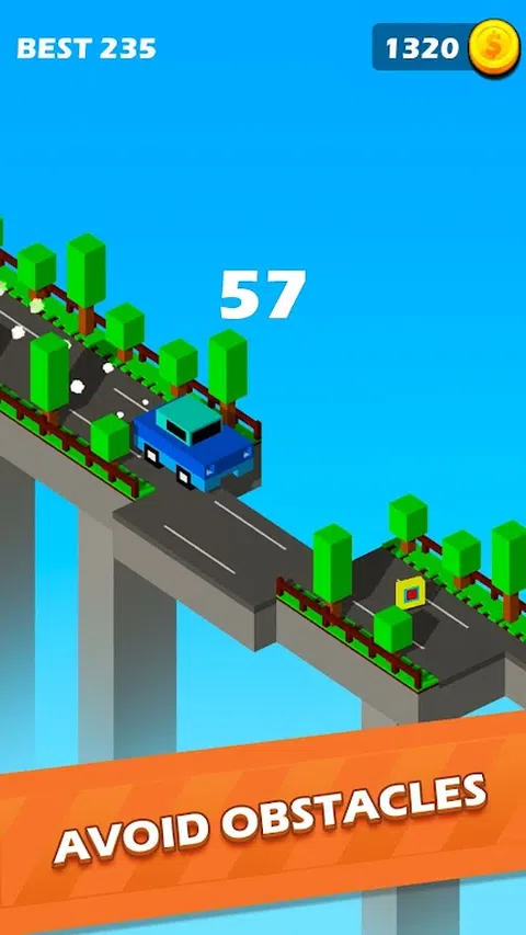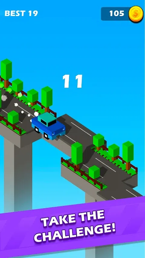 过桥是一个街机生存游戏,你在一座有浮动平台的桥上移动,你需要及时停下来开车越过它们。 你走得越远,你会在路上遇到一排浮动平台越多。 收集在桥上发现的硬币,你可以把它们花在新车上。 在与汽车过桥时,您必须连接道路并制作桥梁。 准备好一个无穷无尽的平台游戏与甜立方体字符