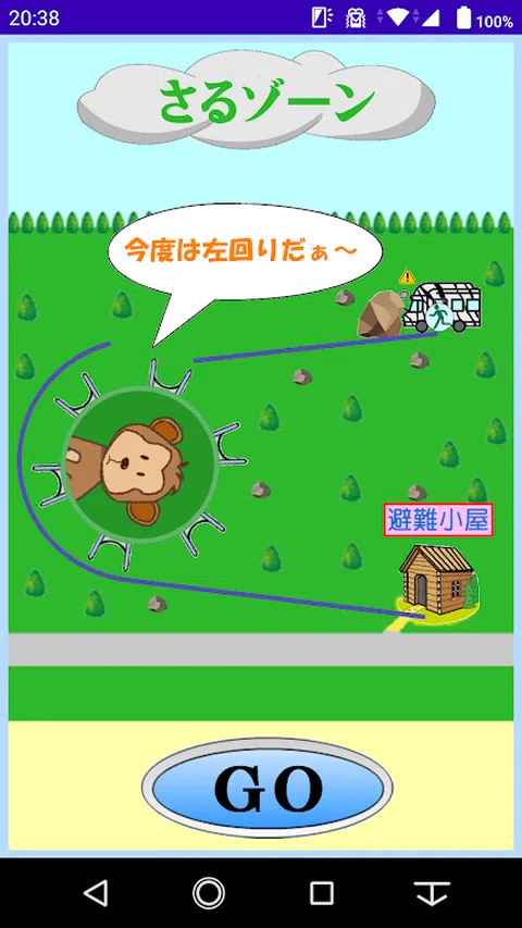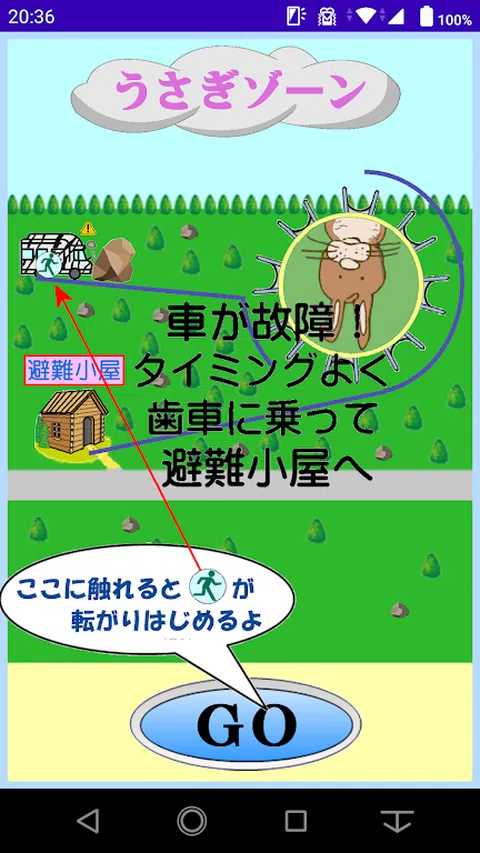 我们安排了一个怀旧的 10 日元游戏,将 10 日元硬币放在齿轮上并将其移动到目标,成为类似智能手机的游戏。 在一个你征服野生动物园的 6 个动物区域的游戏中,当你移动到每个区域时,是否总是这样?野生动物园车撞到岩石并发生故障。从野生动物园车上,在适当的时间运行(滚动)带有 GO 按钮的化身(带有紧急出口标记的人类),以便您可以到达齿轮的安全位置,并将其移动到疏散棚。 另外,如果你清除了6个区域,就会出现“成就”按钮。如果你按下按钮,你可以下载智能手机的壁纸。 (提示写权限存储下载壁纸) 注:头像可能出现在齿轮上,但在特定时间下落。内部计算没有问题,但无法纠正与齿轮旋转描述的偏差。这是我父亲 50 多岁做的游戏,所以请好好看看