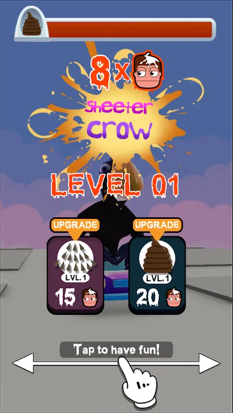 ?欢迎来到惊心动魄的 Sheter Crow 世界? ? 游戏概述:准备好迎接一场与众不同的羽毛狂潮,控制调皮的小鸟希特乌鸦,执行任务,制造令人愉快的混乱! 翱翔在熙熙攘攘的街道上空,装备鸟类武器库中的终极武器:精确瞄准的粪便!你的目标?在下面的汽车上留下您的印记,这让车主非常沮丧! ? 瞄准完美降落:在 Sheeter Crow 游戏中,时间就是一切