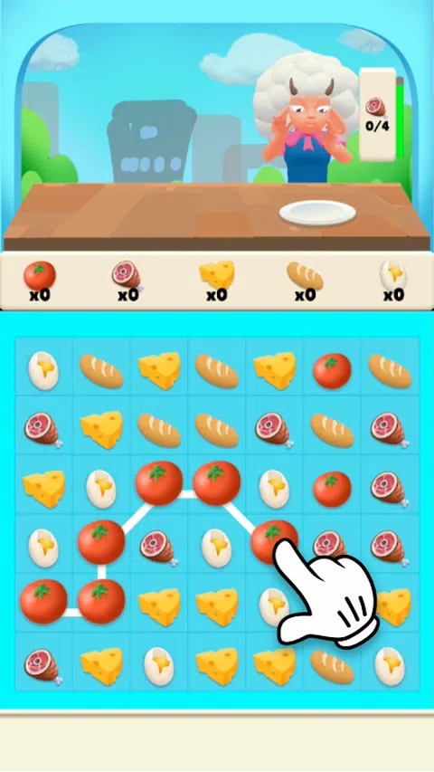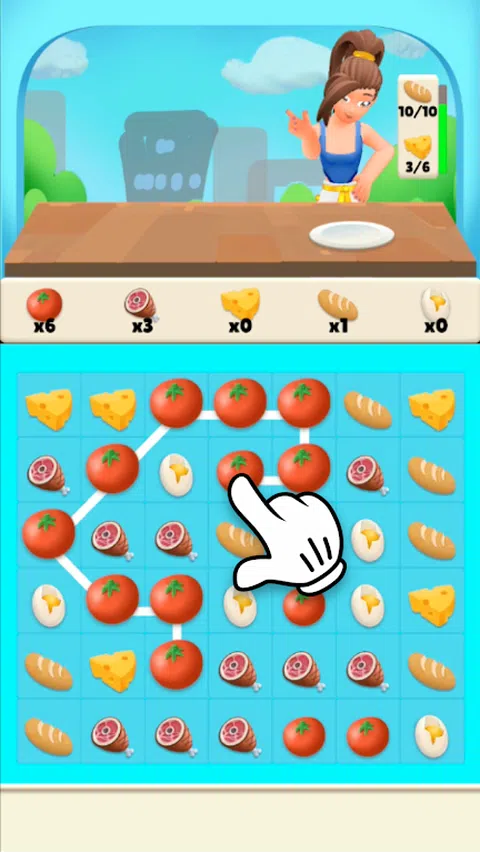 连接相同类型的食物以收集它们!制作最长的连锁店并将其服务给您的客户,成为镇上最好的美食厨师! 易于控制,只需轻点方块并在相邻的同类型食物上滑动即可!注意你的动作和时间,你需要在客户离开之前实现目标