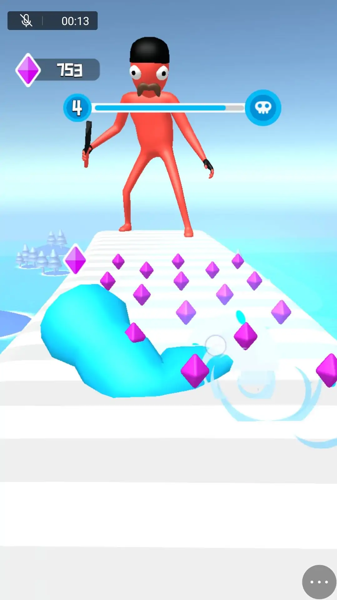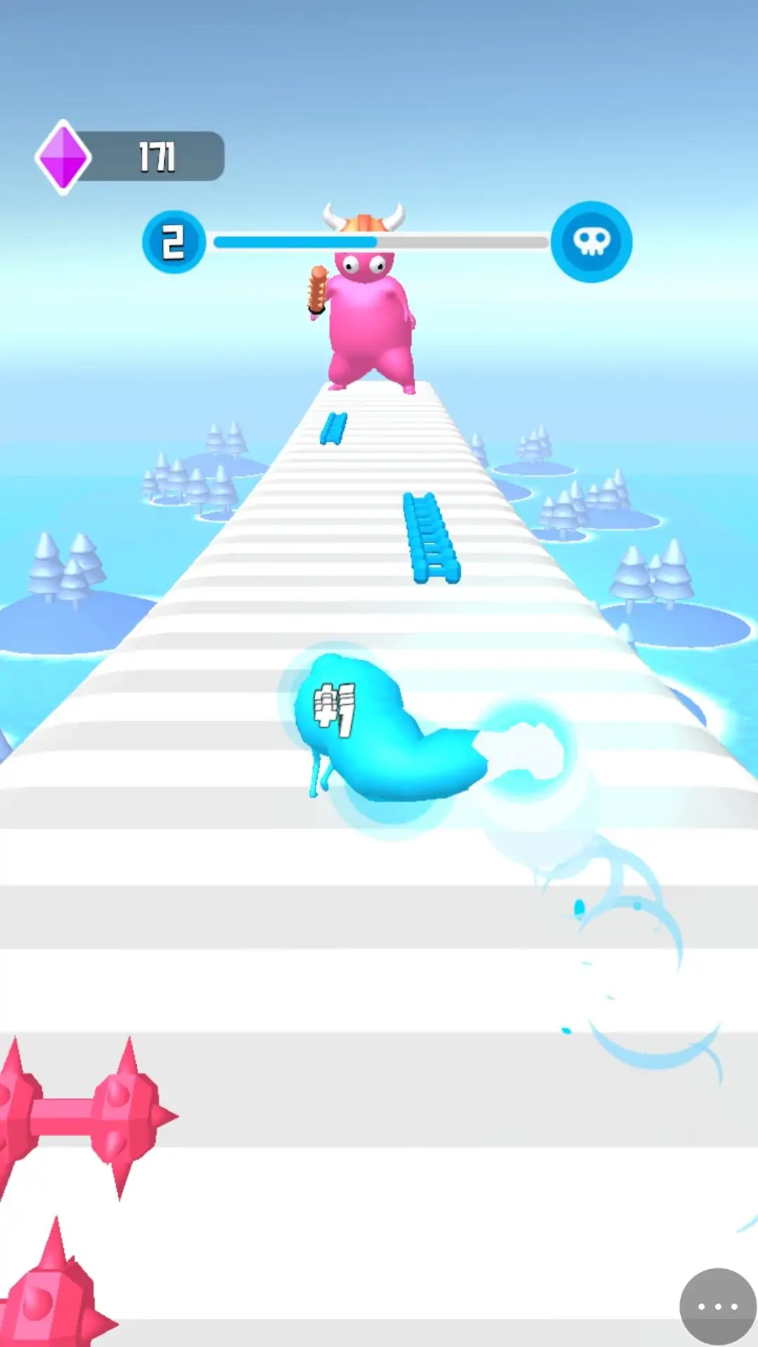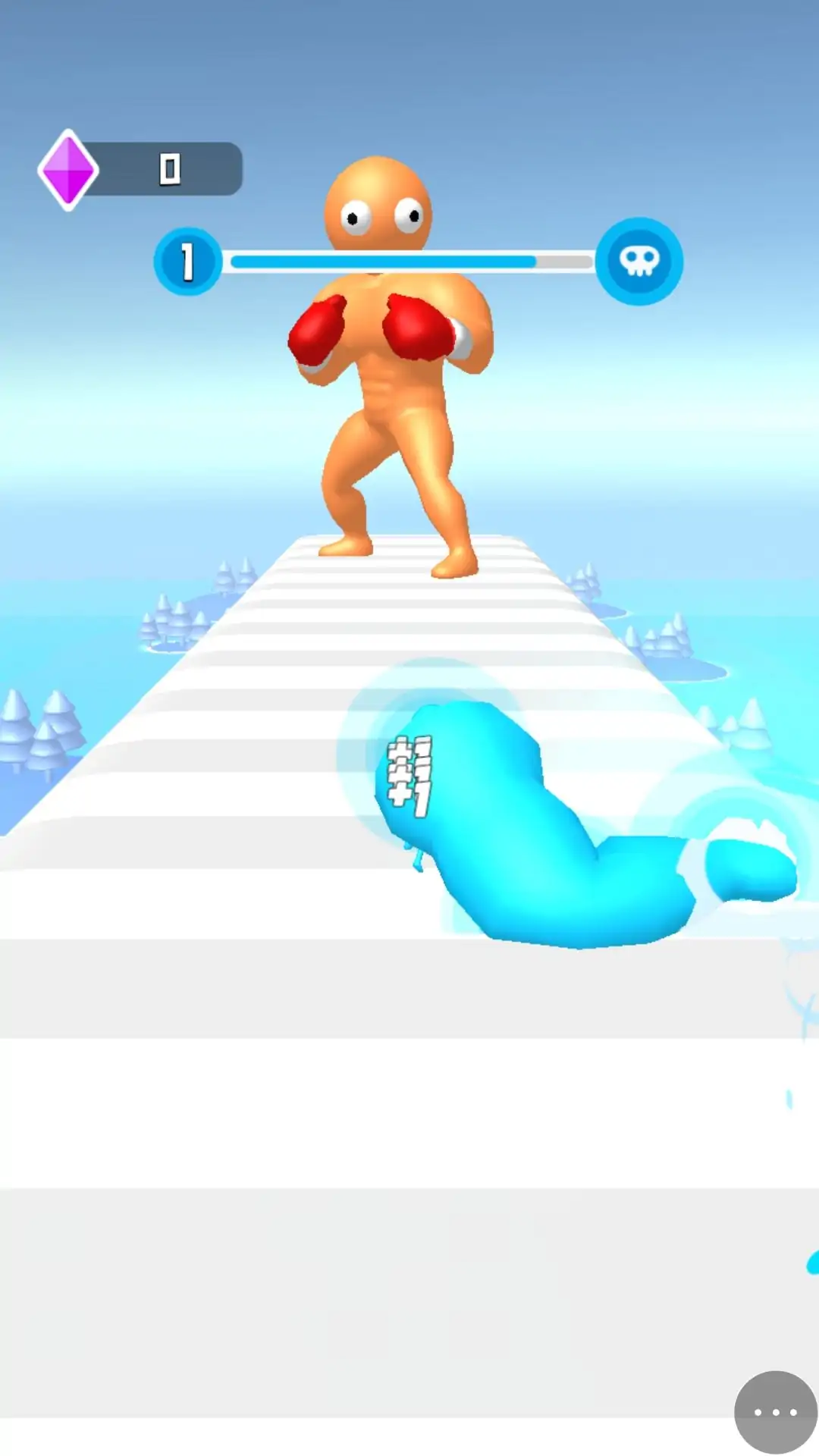 玩家左右滑动屏幕控制小人进行左右移动,收集路途中的哑铃,让自己的拳头变的更大更强,到达终点后,快速点击屏幕对敌人进行攻击,当击败敌人赢得胜利。