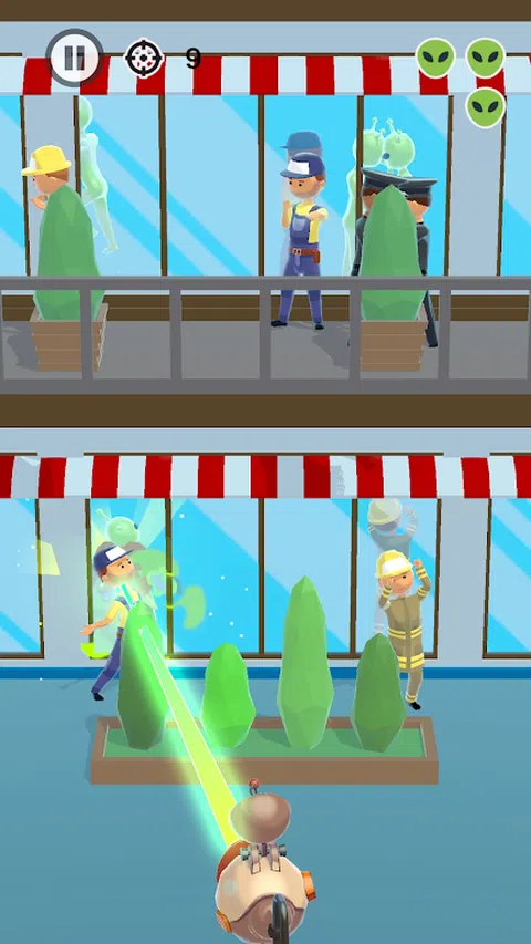 这款“发现外星人”游戏具有简单的游戏玩法。冒名顶替者是躲在我们中间的外星人。他们看起来像正常人,但你可以通过镜子中的反射找到他们。你的目标是发现游戏中的所有外星人,并用冲击波射击它们。现在玩