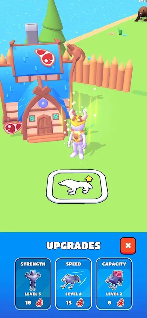 主角是狼人。以人类形式,您必须发展自己的村庄:购买升级并雇用助手来建造新建筑物。伪装成狼,您需要提取最有价值的资源 - 肉类。从狩猎无害的食草动物到大型捕食者。升级您的狼人以击败最强大的对手! 释放内心的野兽:狼人 - 动物狩猎空闲