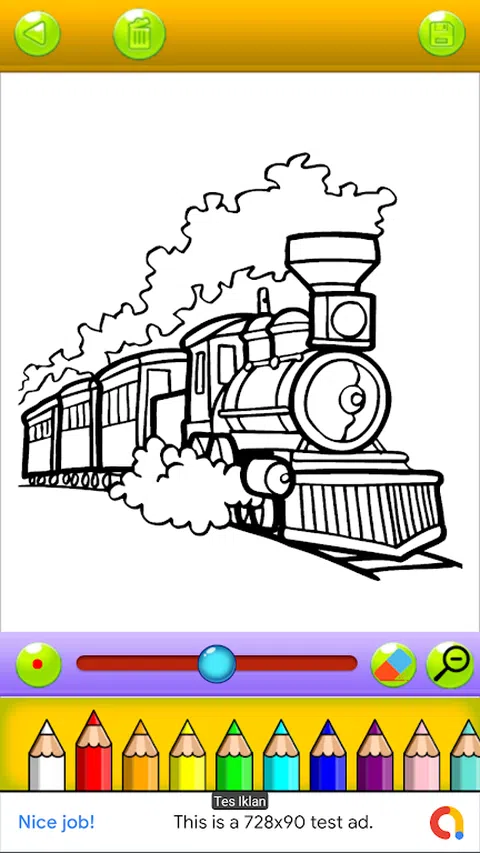 火车着色书是一款教育游戏,可激发您的创造力。如果您喜欢为页面着色并喜欢火车。逼真的火车着色页游戏在火车着色库中拥有巨大的机车、电动火车、地铁和不同类型的火车发动机。每个着色爱好者都会在绘制酷炫的火车着色书时找到很多乐趣。非常简单,全家人都可以享受这本美丽的火车图画书。如果您对火车着迷,这款简单的游戏将为您的游戏和学习提供新的灵感。您可以用自己的想象力和创造力为不同的火车着色。下载这款包含大量不同火车图像的免费游戏,让您发挥创意