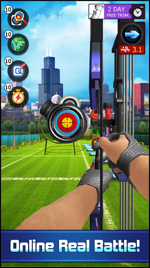射箭弓 3D 是一款射箭射击游戏,可以将您带到这项惊人的现代运动世界! 添加新模式后,您将不会在游戏中感到无聊:与世界各地的真实玩家竞争或完成单人任务,并以任何一种方式提高您的射箭技能! 新元素被添加到游戏中!射击不同的目标,如气球、礼品盒和瓶子,以收集奖励! 我们还改进了 3D 图形、效果和用户体验,凭借您装备的高分辨率图形和广阔的视野,您将更加享受这款游戏! 添加了 3 个新工具,帮助您更轻松地通过关卡! 射箭游戏的各种模式 射箭弓有在线和离线模式。冲刺和经典模式适合喜欢玩 PVP 游戏的竞技玩家。任务和训练模式可让您练习技能,还可以收集硬币和奖金! 超逼真的图形和射箭射击体验 射箭弓从各个方面完全模拟了这项古老到现代的运动:3D 图形、风效果、拉力、箭和目标。此外,不同的目标距离和静止/移动目标会增加不同射箭游戏的难度。 建立你的弓收藏 完成不同的射箭游戏以获得新设备。一把好的弓可以更稳定地握持,并且还可以让您在绘制时施加更多的重量。在有风的条件下,漂亮的箭会飞得更好。升级您的设备,成为最好的弓箭手