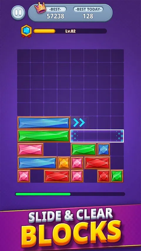 潜入《Jewel Puzzle Block Slider》的世界,在这里,您的战略技能与闪闪发光的宝石在一场智慧和反应的战斗中相遇。 Jewel Puzzle Block Slider 凭借其迷人的游戏玩法和令人眼花缭乱的视觉效果,是将几分钟变成数小时乐趣的完美方式! 规则很简单,但是要掌握最有趣的滑动益智游戏吗?那是一个完全不同的故事!在棋盘上移动方块滑动拼图以填充线条并清除它们。听起来很简单,但是一旦您开始玩,这款滑动积木游戏将迫使您像积木益智游戏大师一样计划每一步。随着关卡的增加,宝石拼图块的挑战也会增加—即使是最有经验的玩家也能保持警惕。没有两个方块掉落滑动益智游戏是完全相同的,所以请带上您的最佳策略! 想要每天玩的不仅仅是常规的方块拼图?Jewel Puzzle Block Slider 满足您的需求!跳入这个宝石块拼图,享受轻松的回合,但同时用最有趣的滑动游戏之一测试您的反应能力。这个滑动拼图的每个部分都提供了一些独特的东西,它还包含在美丽的珠宝主题图形中,这些图形既养眼又费脑。准备好在充满活力的“宝石块拼图”游乐场挑战自己! 但是等等,还有更多!当您玩我们的掉落益智游戏时,您将解锁特殊的能量提升,可以将潮流转向不同的方向。一次滑动即可炸掉顽固的拼图块或清除整条线 - 这款珠宝滑动游戏不仅外观漂亮,而且功能强大!随着每一个新的加能,“宝石拼图块滑块”增加了新的策略层,以保持乐趣。你的宝石拼图收藏越来越强大,拼图也越来越强大。 无论您是希望通过“滑块益智游戏”放松身心的休闲玩家,还是寻求下一个挑战的益智专业人士,这款滑块游戏都适合每个人。控制流畅,视觉效果令人惊叹,滑动拼图令人无尽满足。那么,当您可以体验宝石拼图块滑块的快感时,为什么要满足于普通的滑动拼图呢?立即开始您的旅程,让充满珠宝的乐趣开始