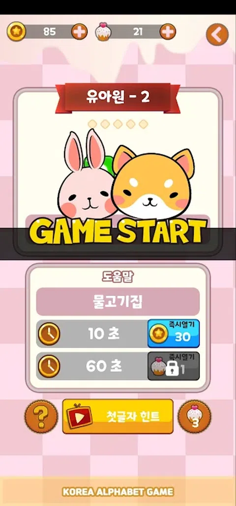 适合所有年龄段的第一次语音时间 Juri 的声母音时间是一个问答游戏,您可以在其中看到声母音的帮助并猜测正确的答案。 内容分为普通模式、排名模式、各字段三种。 在正常模式下,提供阶段型问题。 排名模式是一种在60秒内解决许多问题的人的分数会增加的游戏。 每个正确答案的游戏时间+3秒,因此不超过60秒。 每场比赛都有一个主题,收集相关领域的问题。 它非常适合休闲时间,并在平静的图形中包含提示功能