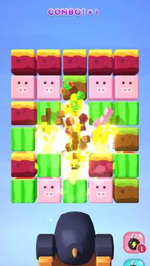 玩法说明 1)滑动屏幕移动大炮 2)松开手指来射击立方体 3)射击立方体,粉碎中间的立方体和相邻的立方体 游戏特色 2)各种方块皮肤