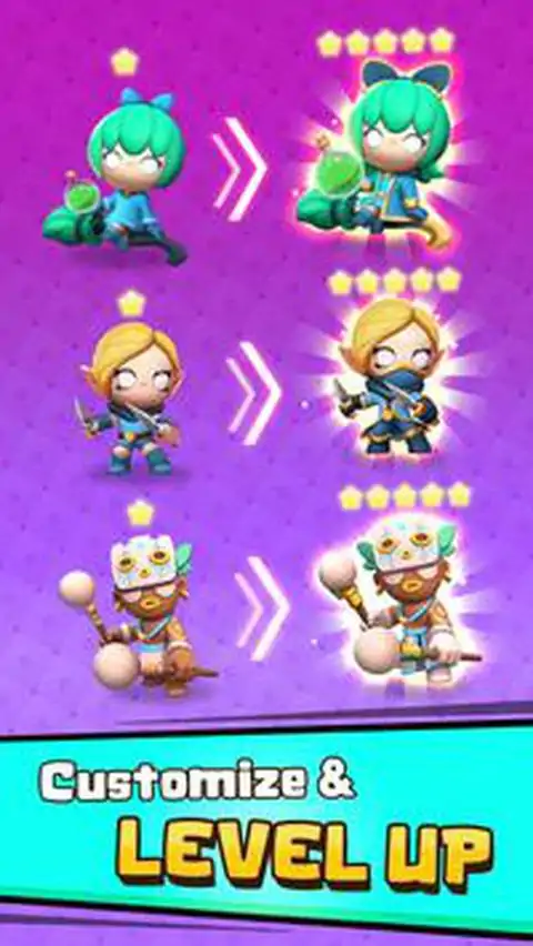 通过掌上最史诗、最刺激、最冒险的自动战斗游戏来证明你卓越的智力。 创造你独特的选秀、位置并升级心爱的迷你冠军,以登上世界之巅。即使在绝望的时刻,也可以利用回收和重新滚动单位的能力作为出其不意的元素来扭转局势。 易于学习,难以掌握 - 只需轻轻一按即可部署您的大脑策略。 - 为战斗中可能发生的数百种不同场景做好准备。 快速而戏剧性的战斗: - 锁定阵型后,小型战斗会自动开始。 - 坐下来,放松一下,观看你的冠军展示他们炫酷的动作。 - 多样化的环境和对手可供对抗。 可定制阵型: - 使用给定的单位构建您的阵型或重新滚动以期获得更好的获胜机会。 - 合并以增强您选择的单位以适应您的计划。 - 在棋盘上自由移动你的单位 史诗般的可爱角色: - 20 多个具有独特技能的角色可供选择。 - 每个角色的独特设计和效果。 - 升级你的英雄以解锁新的天赋。 立即下载并畅玩《Auto Clash》,准备好享受一生中最美好的时光