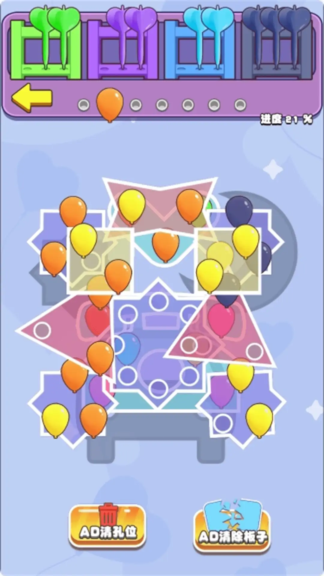 一款休闲类小游戏,按正确的顺序拆下探针来戳破相应颜色的气球并完成关卡。游戏中还有极具考验思维的扭螺丝游戏,需要玩家通过不同角度思考如何安排螺丝位置并完成拆卸固定的板,因为每个关卡都有独特的安排,需要仔细规划和执行才可以通关。
