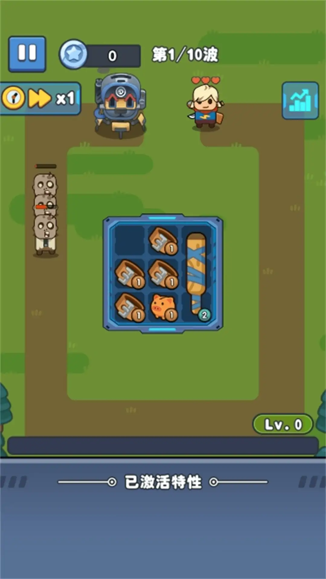 一款经典的闯关塔防小游戏。在游戏中,玩家需要通过将武器装备在背包的正确位置,组合武器特性技能,增强自身实力,从而应对接踵而至的敌人,完成这场挑战。