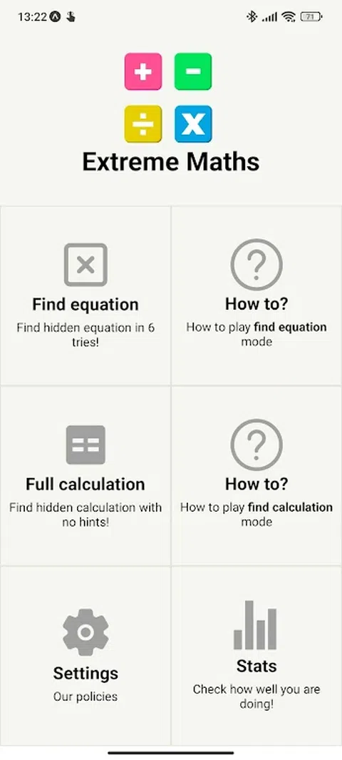 极限数学是一个简单而有趣的数学谜题。 游戏中有2种有趣的游戏模式: - 寻找方程式 - 您有 6 种猜测来解决难题,只有一个提示 - 方程式的答案。输入方程式以填充所有游戏图块,并获得更多提示,使您更接近目标! - 完整计算 - 您可以通过 6 次猜测来解决难题,但是这次您没有得到任何提示!通过输入可添加到任何答案的任何等式来获取提示! 两种游戏模式都非常有趣且具有挑战性,因此今天就下载并挑战极限数学