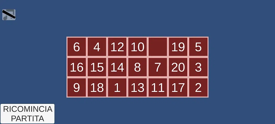 重新排列箱子的顺序,直到到达数字1的位置 左上角和其他数字从左到右 e 从上到下留最后一个空白 您可以选择经典的 4 x 4 正方形(标准 15 的游戏)或 任何边长为 3 到 10 的矩形。 您可以单击或拖动以拖动卡。 它总是将自己拖入空白空间。 现在免费和单人游戏 多人模式将在稍后添加 在游戏结束时,系统会告知移动次数和所需时间