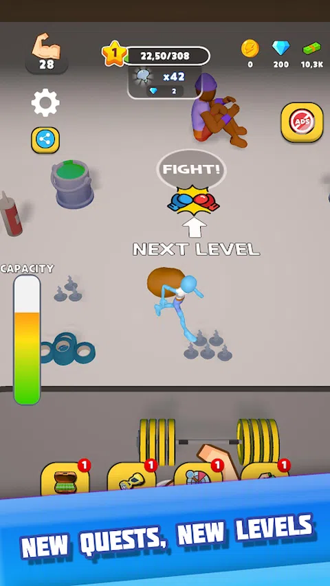你准备好成为《肌肉大师 2》中的终极肌肉男英雄了吗? 在 Muscle Muster 2 中,它不仅仅是举重—每个级别都是一次冒险!收集独特的物品,完成任务,探索不同的主题,同时增强力量并与老板战斗。使用您的奖励来解锁史诗皮肤并炫耀您的终极变身! 在每个任务中,你将面临新的挑战并收集物品以增强你的力量。你能成为游戏中最强的英雄吗? 举起、收集、战斗并重复