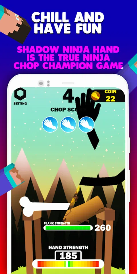 Shadow Ninja Hand 是一款动作包游戏,可让您成为熟练的影子忍者战士。您所要做的就是 - 正确瞄准并尽可能用力打击。仪表会来回移动 - 正确计时,以获得最大功率! 跟随每个级别的仪表,在适当的时候点击屏幕进行点击。这个游戏测试你的反应能力和反应速度,所以如果你不注意,你可能会输。 轻松的游戏将测试您的力量和计时技巧,因此您的重击可以在暗影忍者时间锦标赛中产生最大的力量。不错的休闲,放松,啪啪啪,很好玩。 Shadow Ninja Hand 是真正的忍者砍冠军游戏。这是放松大脑,增强反应能力并释放内在压力的最佳方式。 是时候淘汰比赛并向他们展示谁拥有真正的忍者之手了! 游戏特色: 流畅的游戏控制。 轻松有趣地玩。 有趣的人物木板。 简单但令人上瘾的机制。 放松并享受乐趣。 暗影命中。 吹忍者波。 使用您的手力来打破木板并改变您的命运