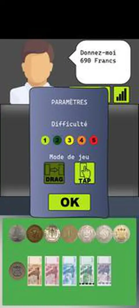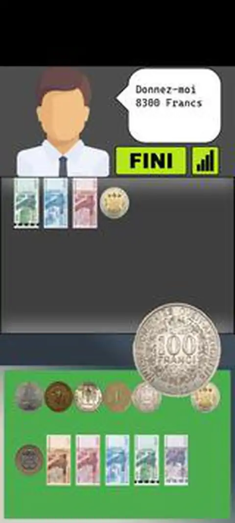 儿童教育游戏 - 学习用非洲金融共同体法郎硬币和纸币数钱! 游戏的目的是数出收银员指示的金额,但要小心!收银员没有零钱,也不授权还债!因此,您必须使用西非硬币和纸币支付准确的金额,精确到美分! 游戏有多种设置和游戏模式,以便更好地控制。它也有几个难度级别