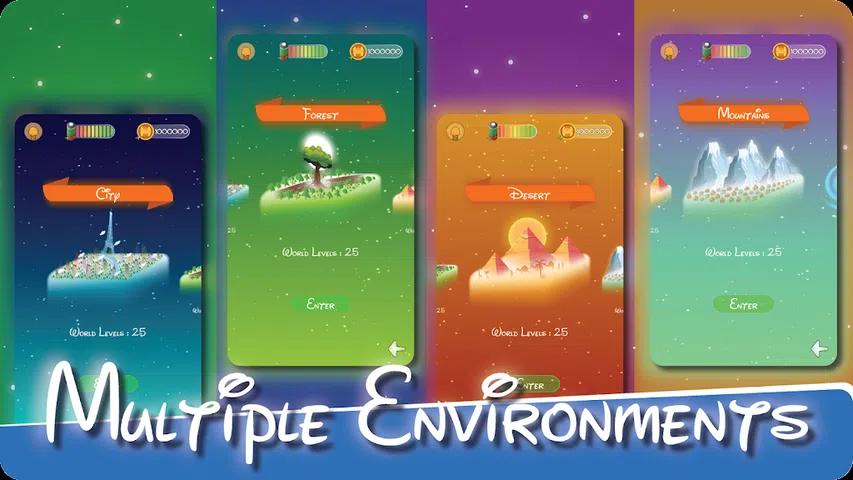 级别基于平台游戏具有不同的环境和多种类型的平台或障碍。从一个平台跳到另一个平台,沿途获得积分
