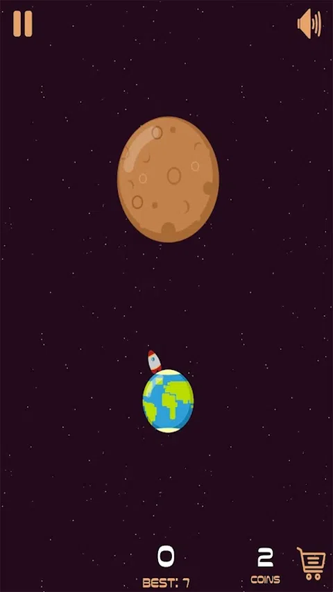 轨道 你的目标是在正确的时间点击屏幕,使飞船沿直线移动到下一个星球。 如果您没有在正确的时间执行此操作,因此无法到达地球,则会导致游戏结束。 您还可以收集硬币来购买飞船皮肤。 享受游戏