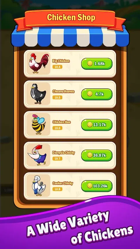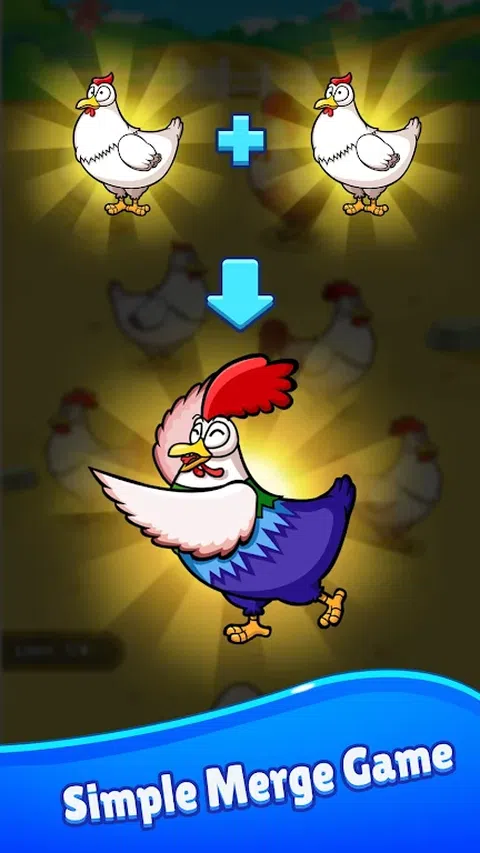 Chicken Winner 是一款简单的合并游戏。用指尖滑动,合并2只同等级的小鸡即可获得免费奖励。这是一款适合家庭一起玩的休闲且令人上瘾的游戏