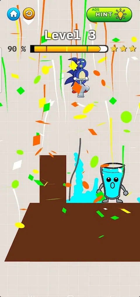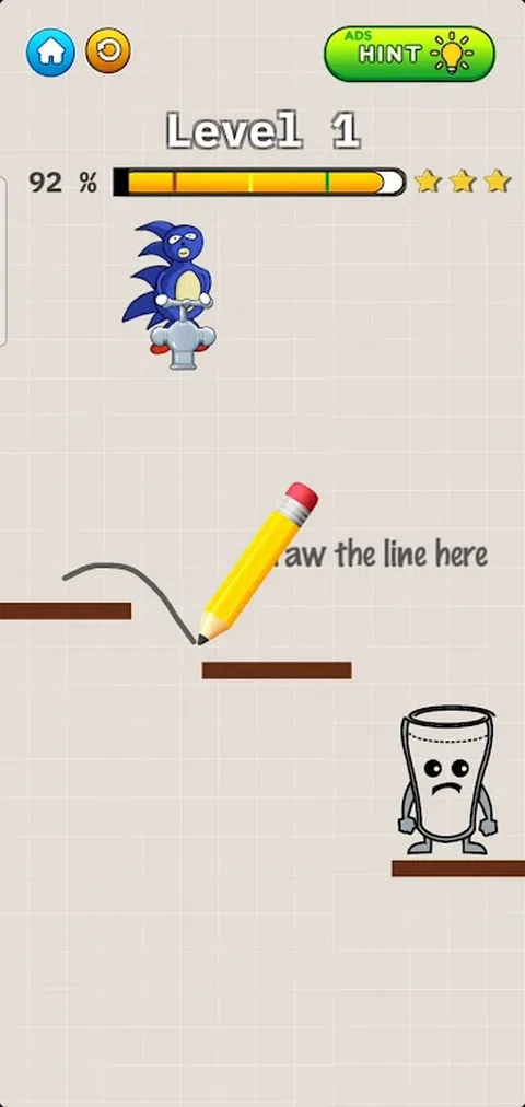 杯子很伤心,因为它是空的。你的工作是画一条线,让杯子里装满液体,然后再次微笑! 尝试找到完成每个级别的最佳方法。您可以提出自己的解决方案,因此要有创意,不要害怕开箱即用