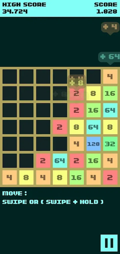 这是“Gabriele Cirulli”原创 2048 游戏的移植版。 目标是获得最高值(数字)的图块,并收集与得分一样多的图块。滑动图块进行移动,相同值(数字)的图块将被合并,并产生双倍的值(数字)