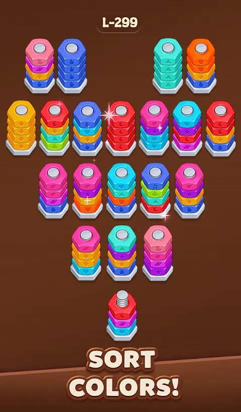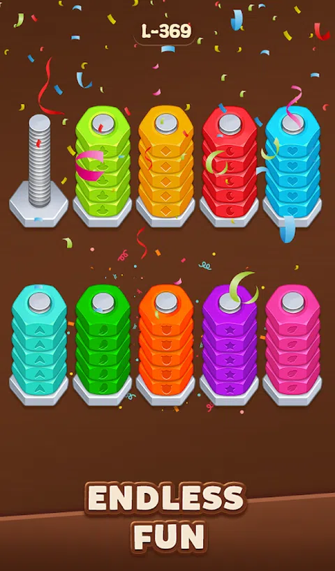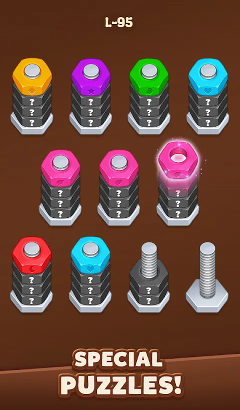 潜入木坚果螺栓螺丝分类的世界,这是一款迷人的益智游戏,可以测试您的逻辑和战略思维。这款游戏围绕温暖的木质主题设计,为螺丝和螺母螺栓分类拼图提供了令人耳目一新的转折,非常适合那些喜欢挑战分类拼图的人。 怎么玩: 将彩色坚果分类到螺栓上,并通过以正确的顺序排列它们来清除关卡,以便所有螺栓都持有相同颜色的坚果。这听起来很简单,但是随着每个关卡的进行,螺母和螺栓谜题变得更加棘手,需要您提前思考并计划每一步。 游戏附加功能: - 撤消 - 纠正错误的动作。 - 洗牌 - 重新排列基本要素,找到解决难题的新方法。 - 提示 - 揭示隐藏的坚果。 - 钥匙 - 当你被卡住时,获得额外的空间来移动你的坚果。 - 数以千计的手工制作的木螺钉 - 螺母和螺栓分类级别等你解决。 - 轻松、身临其境的木拼图体验。 - 在每个具有挑战性的木坚果分类级别中训练您的大脑并增强您的逻辑技能。 无论您是在寻找快速的脑力锻炼还是长时间令人满意的益智游戏,螺母螺栓主题分类益智游戏都是完美选择。容易上手,难于精通,但又引人入胜—这款坚果分类游戏是木螺栓果酱益智游戏爱好者的终极果酱! 准备好解开螺丝拼图挑战了吗?立即下载,测试您的分类技巧