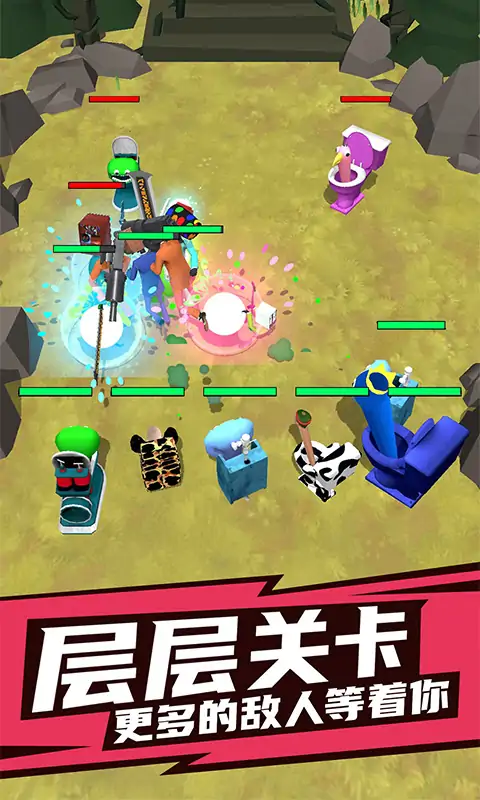 一款有趣的监控人和马桶人的冒险对战游戏,在游戏中有很多不同的角色可以通过合成来进行进化展现新的战斗形态和属性增长,加上魔性的背景音乐,玩起来相当新颖有趣,玩家可以在这里展开属于自己的冒险和战斗,尽情的释放压力。