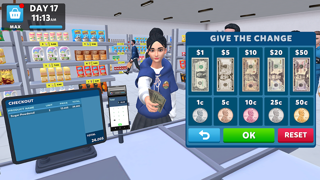 作为超市经理,您将管理日常运营,响应客户需求,并制定吸引人群的促销活动。通过每一次成功的销售,您将建立自己的声誉并扩展您的业务。通过装饰其氛围来个性化您的 3D 超市商店,以反映您的独特风格,使其成为杂货游戏中购物者的首选目的地。在这个真实的超市模拟游戏中,在确保财务稳定的同时,在超市之旅中导航,争取成功。 多样化您的产品范围:扩展您的超市商店的产品,以吸引更广泛的受众并满足多样化的客户需求。解锁新的食品,让您在这款超市经理模拟游戏中的库存保持新鲜,并鼓励热切的顾客重复光临。 个性化您的商店:作为超市收银员,自定义超市商店的布局和装饰,打造独特的购物体验,赋予其个性化风格。 管理库存:跟踪库存水平,及时下订单并监控销售趋势,以确保在这个杂货店游戏中,您的货架上始终备有正确的产品。 ⚡管理挑战:要成功管理超市模拟器并在模拟游戏中成为超市经理,需要战略思维和适应能力,从平衡预算和管理员工(例如超市收银员)到响应客户反馈并适应市场趋势。 库存货架:库存充足且井井有条的货架可增强购物游戏体验并鼓励冲动购买。成为超市经理大师,根据受欢迎程度、季节趋势和促销活动有策略地组织商品。 结账顾客:作为超市收银员,确保顺畅高效的结账体验可以显着影响顾客满意度。它是超市模拟器中客户旅程中的关键接触点,可提高此购物游戏中的客户满意度。 开展促销活动:设计引人入胜的促销活动,例如折扣、捆绑交易或忠诚奖励,以激发兴趣并增加这款超市模拟游戏中的客流量。 在 3D 超市模拟器中开始您的冒险,并在这个激动人心的模拟游戏中成为商店经理,探索市场!无论您是玩在线游戏还是离线游戏,身临其境的体验等待着您,因为它不是 wifi 游戏!