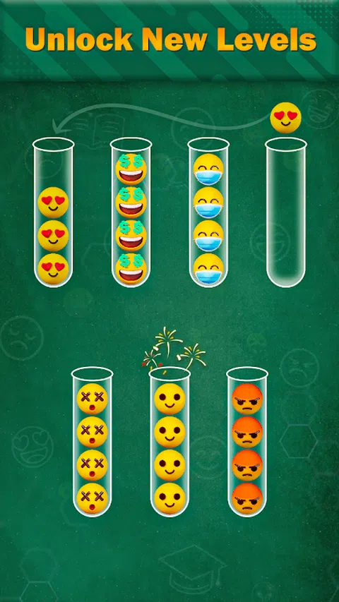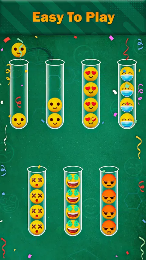 表情符号排序:表情符号匹配拼图游戏是一款有趣且具有挑战性的益智游戏,要求玩家使用解谜技巧将不同的表情符号分类到各自的试管中。 游戏玩法很简单:玩家从多个试管开始,每个试管包含不同类型的表情符号。目标是将表情符号从一个试管移动到另一个试管,对表情符号进行排序,以使每个试管仅包含一种表情符号。 要移动表情符号,玩家必须在表情符号离开时点击试管,玩家需要点击另一个包含类似表情符号的试管,随着玩家通过关卡,试管的数量和类型表情符号增加,使表情符号排序:表情符号匹配益智游戏更具挑战性。 游戏具有直观的控制和简约的设计,让玩家可以专注于手头的任务。表情符号排序:表情符号匹配益智游戏有数百个级别可供游戏,为所有年龄段的益智游戏爱好者提供数小时的脑筋急转弯娱乐