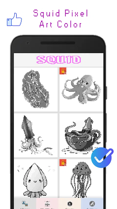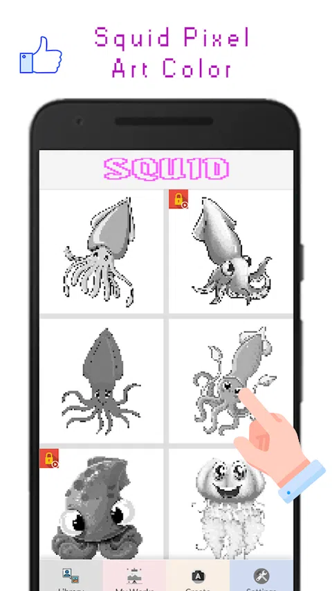 Squid Pixel Art Color 是一款适合所有人的填色游戏。现在下载!好的!并选择你喜欢的角色。和你的朋友一起玩,享受它