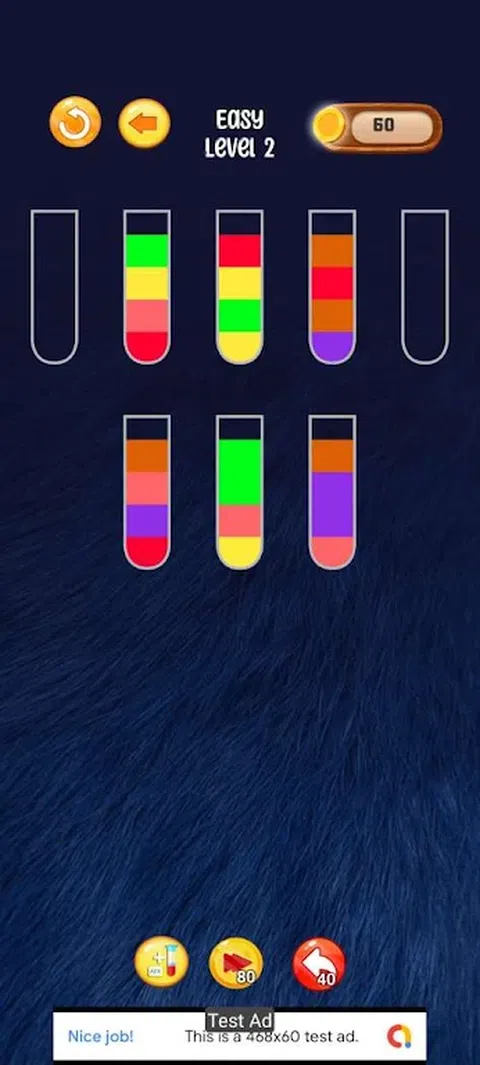 这款填充颜色:液体分类游戏是一款具有挑战性的颜色游戏。现在是时候在这些类型的游戏和 sortpuz 水上益智游戏中获得灵感了。全彩色倒瓶游戏的关键是使用您的大脑,并相应地在每个管中正确分类颜色。有不同的管子,里面充满了不同的颜色。保持冷静,对管中的每种颜色的水进行分类,除非每个管中所有颜色管的所有相同颜色都在一起,否则您可以成为此水彩益智游戏的英雄。 这款 Fill Color: Water 拼图游戏的有趣之处在于,您可以将相同颜色的水倒在管子的顶部,并且您要浇注的管子中必须有足够的空间。因此,在此水上益智游戏中倒入彩色管时要小心。现在是时候接受具有挑战性的颜色匹配大师拼图关卡,并解决拼图游戏以提高您的思维能力。 在解决水分类拼图拼图时,请确保您不会卡住,如果卡住了,您可以刷新级别。填充颜色:水排序拼图是最令人上瘾的游戏,也是最出名的游戏,因为您没有解决拼图的时间限制,您可以随时来提神,消磨时间。这款令人上瘾的游戏是每个人最喜欢的消除无聊游戏。您可能玩过鸟类分类游戏或球分类颜色游戏,但是这个填充颜色:水分类拼图比鸟类分类游戏或水分类益智游戏更容易上瘾。玩充满乐趣的水彩游戏。 特点: ★ 容易上手,难于精通。 ★ 永久完全免费。 ★ 通过颜色匹配技巧解决逻辑谜题 ★ 挑战您的大脑,消除无聊。 ★ 消磨时间的最佳颜色分类游戏。 ★ 为您打造轻松愉悦的彩色游戏