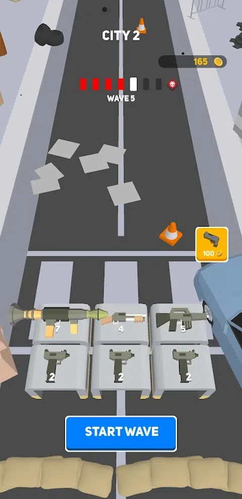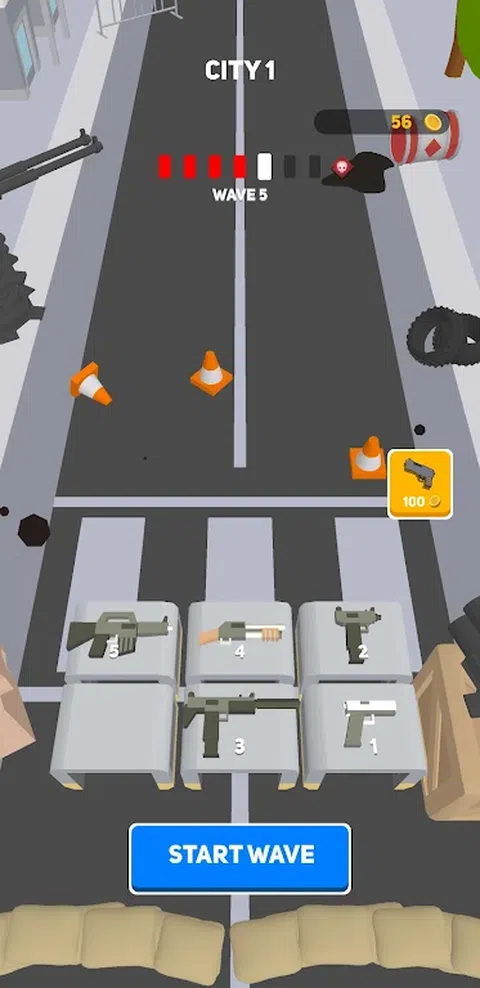 将枪支合并为更好的武器并杀死僵尸!一波波僵尸即将来临,你需要保护自己! 购买武器并通过合并为另一相同级别的武器来升级它。您从手枪开始,最终可以使用最强大的武器 - 角色扮演游戏。共有 7 个级别的武器升级!但是升级武器时要小心,因为有些武器会在该区域造成很小的伤害,或者只能击中一个僵尸并造成很大的伤害! 完成每个由 6 波僵尸组成的城市,并击败每个城市的独特首领