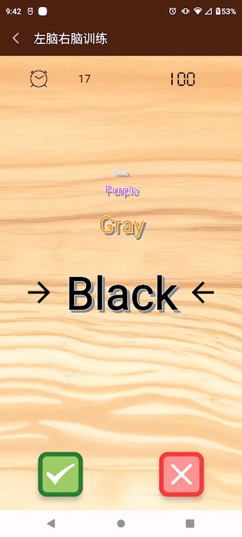 左脑右脑颜色训练是一款极富挑战性的认知游戏。在游戏中,屏幕上会出现带有颜色的文字,而这些文字的内容实际上表示了现实中的颜色,例如红色、绿色、蓝色等。然而,文字的颜色和文字本身所描述的颜色可能并不匹配,这就需要玩家快速做出判断,并根据判断准确性进行得分。 游戏的规则相对简单,但其内在的复杂性让人不容小觑。玩家需要在1分钟的时间内尽可能多地正确判断文字颜色是否与文字本身所表示的颜色相符。如果文字颜色和文字内容匹配,玩家需要迅速打勾表示正确;如果不匹配,就要毫不犹豫地打叉表示错误。每个正确的判断都会增加得分,而错误的判断则会扣除得分,因此玩家在游戏中需要兼顾准确性和速度。 这款游戏背后的挑战在于人的大脑结构。左脑和右脑在认知和信息处理上有着不同的特点。左脑主要负责语言、文字理解和逻辑推理,而右脑则擅长处理图像、空间认知和直觉等。在这个游戏中,左脑和右脑的功能会产生冲突:左脑倾向于按照文字内容进行判断,而忽略文字颜色;右脑则更容易被文字颜色所影响,而忽略文字内容。这种冲突导致了游戏的难度,需要玩家在极短的时间内进行跨越性的认知切换,从而做出正确的选择。 这种认知冲突可能导致玩家在游戏中频繁出错。尽管游戏看似简单,但由于大脑的两个部分在信息处理上的分工,许多玩家可能会陷入困惑,误判频发。因此,除了纯粹的记忆和观察能力外,游戏还考验了玩家的灵活性和应变能力。通过不断的练习,玩家可以提高对这种认知冲突的处理能力,从而在1分钟内获得更高的得分。 总体来说,左脑右脑颜色训练是一款有趣且挑战性极高的认知游戏。通过这款游戏,玩家可以感受到大脑在不同认知领域之间的转换和协调,提高自己在信息处理和应对认知冲突方面的能力。同时,这款游戏也为大脑的研究和认知心理学领域提供了有趣的实验素材。无论是对认知科学感兴趣的专业人士还是对挑战自我认知能力感兴趣的普通玩家,左脑右脑颜色训练都将带来独特而有益的体验