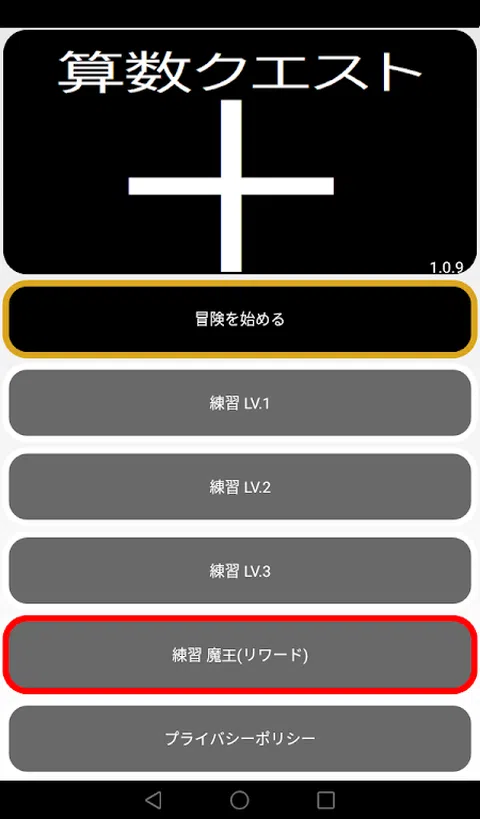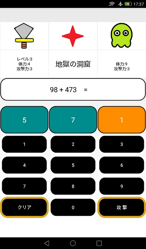 ○什么是数学探索+? 算术任务+ 一款有趣的数学游戏,您可以使用加法来击败魔王。 通过正确回答屏幕上显示的问题来减少敌人的生命值。 这是一款以升级为目标的游戏。 准确回答一个又一个问题,证明你作为英雄的力量! ○主要特点 输入屏幕中央显示问题的答案。 点击[攻击]按钮。 如果你回答正确,敌人的生命值就会减少。 当你的体力为零时,你就可以击败敌人。 另一方面,如果答案不正确,英雄(你)的体力就会下降。 如果你的体力为零,你就输了。 ○菜单 冒险模式: 作为英雄,回答从 1 位数加法到 3 位数加法的各种问题。 这是一种击败敌人的模式。 通过击败敌人来升级并进入下一阶段。 最终boss尤其强大! 练习模式Lv1: 此模式允许您重复练习个位数加法。 练习模式Lv2: 此模式允许您重复练习两位数加法。 练习模式Lv3: 此模式允许您重复练习 3 位数加法。 从这些菜单中进行选择并训练您的数学技能