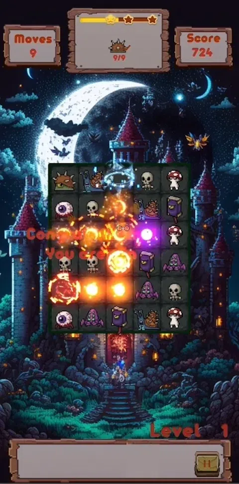 ? 时尚美观的三消游戏,夜晚的魔力,城堡和星星,万圣节风格和宜人的活力。 ? 在拥有可爱像素风格怪物的古老城堡中,玩精彩的匹配 3 拼图。 ? ? 手工测试所有级别 ? 有些关卡并不复杂,给人一种当之无愧的胜利的感觉 ? 但是某些级别确实具有挑战性(并且您手头总是有助推器可以获胜!) ?您可以获得很酷且可变的游戏硬币助推器 ?怎么玩 游戏中有不同的万圣节怪物。如果你用手指移动一个怪物,使 3 个或更多相同的怪物并排站立,它们就会爆炸。 ?游戏特色 ? 有趣且非常不同的可爱怪物。 ? 150 个可用级别,并且数量将继续增长。 ? 尽享乐趣! ?您可以只用一只手享受游戏。 ? 可爱而愉快的体验!你不会注意到你是如何开始微笑的!不要注意时间是如何流逝的