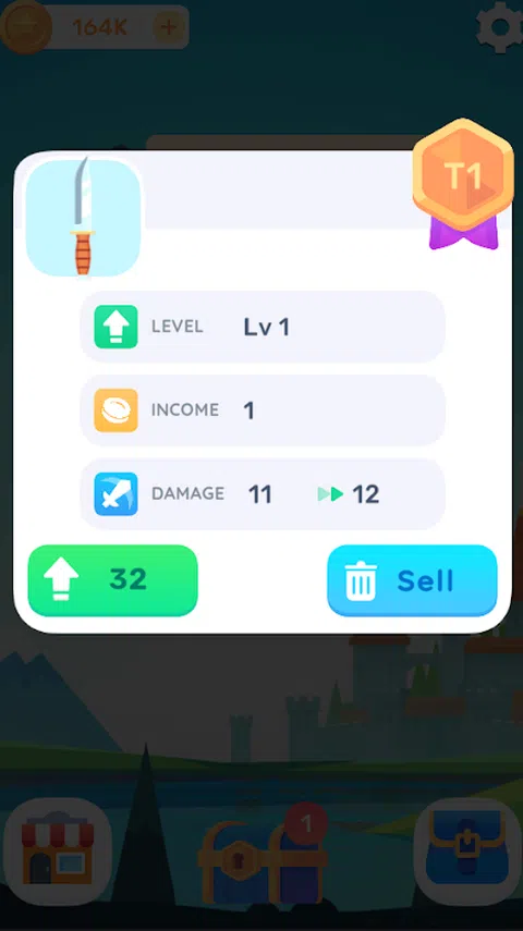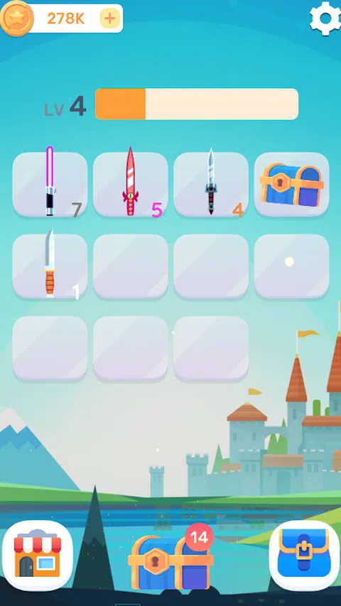 一键向敌人扔刀,小心不要碰到旋转的盾牌。通过合并和升级获得更强大的武器