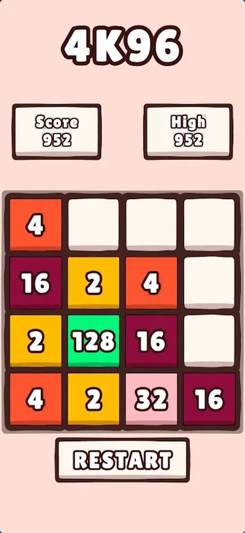 潜入 4k96 的拼图世界!通过战略性游戏挑战您的思维,合并图块以达到难以捉摸的 4k96 图块。简单易学,但很难掌握,你能征服终极数字谜题吗?立即玩,测试您令人费解的实力
