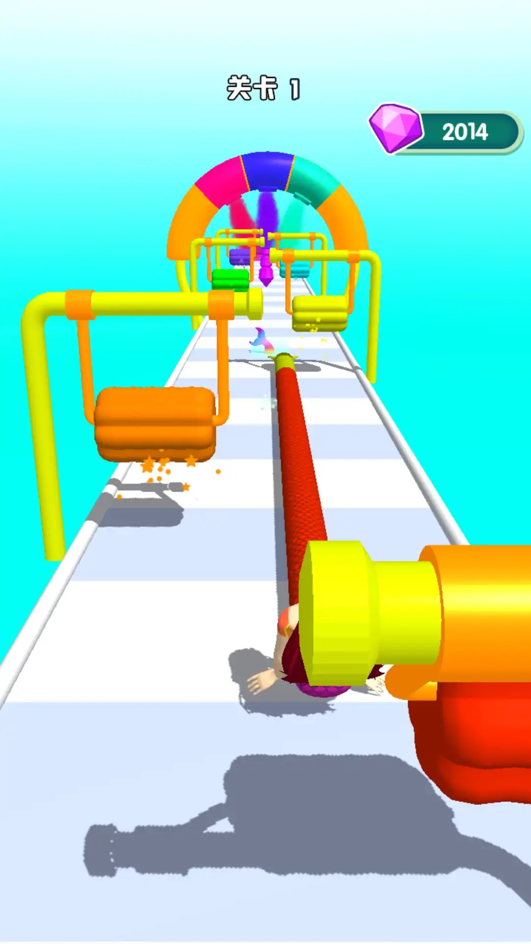 拾取游戏中的道具来增加自己的尾巴长度,也可以使用染色道具使尾巴变得更加绚丽多彩,游戏中还有减少尾巴长度的机关陷阱,注意躲避